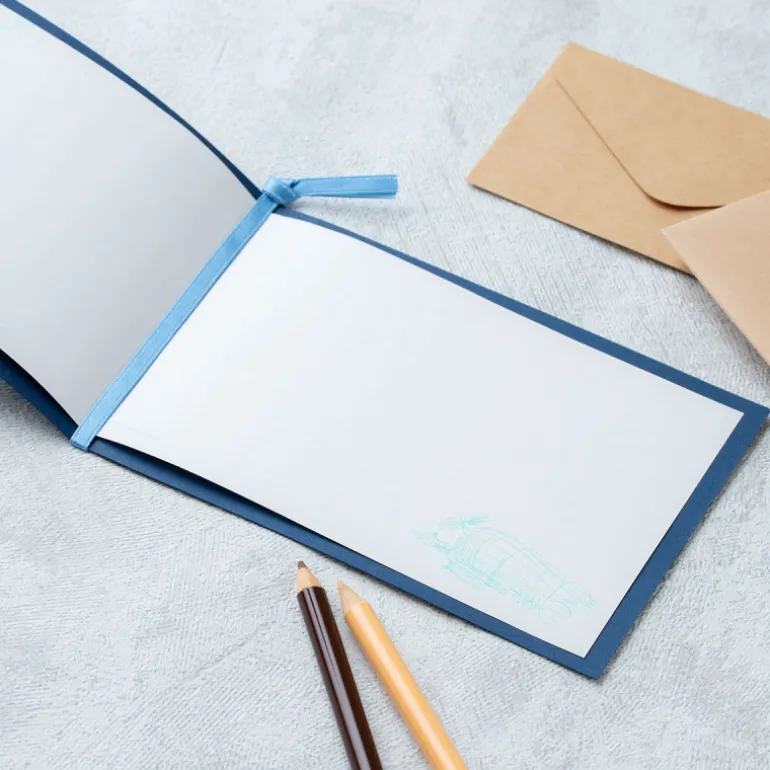 Pliée en deux, l’intérieur est en papier blanc de qualité, accompagné d’un ruban, ce qui vous permet d’écrire de nombreux messages.